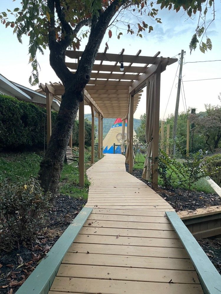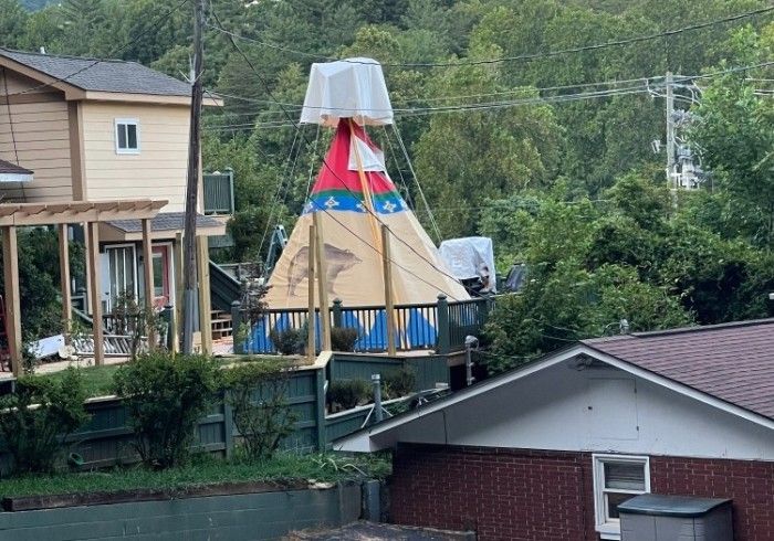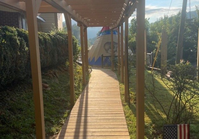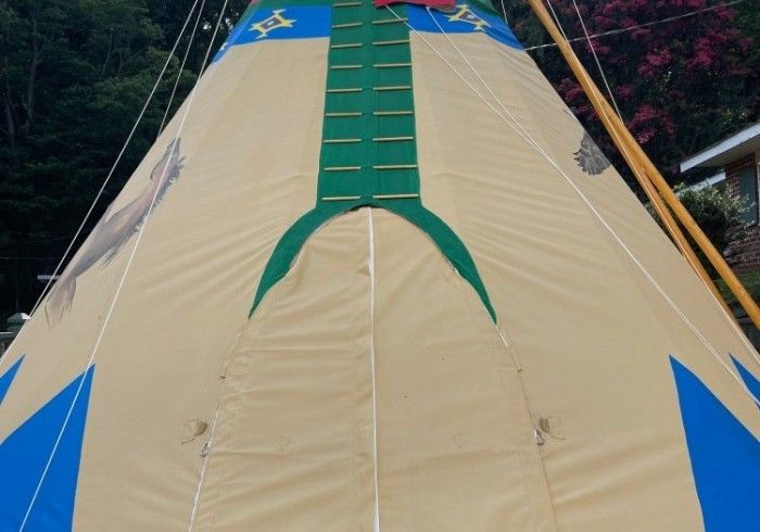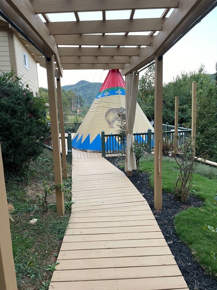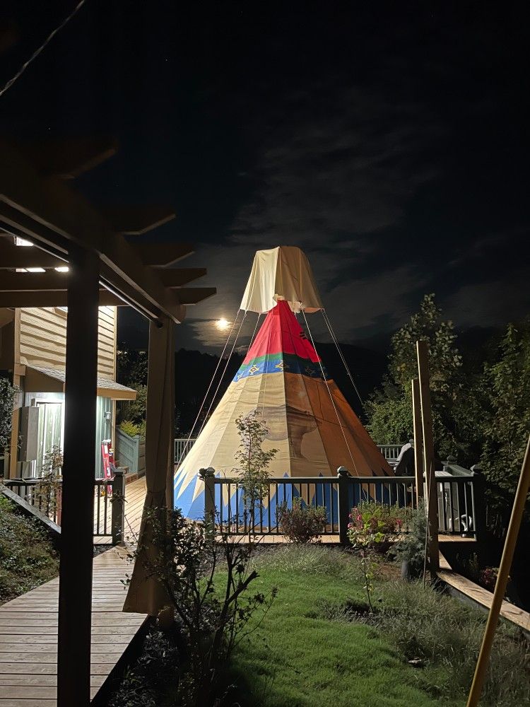 An authentic, beautiful, handcrafted & hand-painted Tipi, made in Oregon, and now here for your enjoyment in Clayton, Georgia! This fully Air Conditioned & Heated authentic Tipi features a Queen bed and two fold-out couches for kids, a flat screen TV, a small hanging rack with shelves & drawers, a private bathroom with tub/shower, and all on a large deck with beautiful mountain view, plus we are just a 12-minute walk to downtown Clayton! Come create a wonderful experience for you and your family in The Tallulah Tipi, our newest addition to Mountain Aire Cottages, Inn, & Glamping!! We have a 2-night minimum.