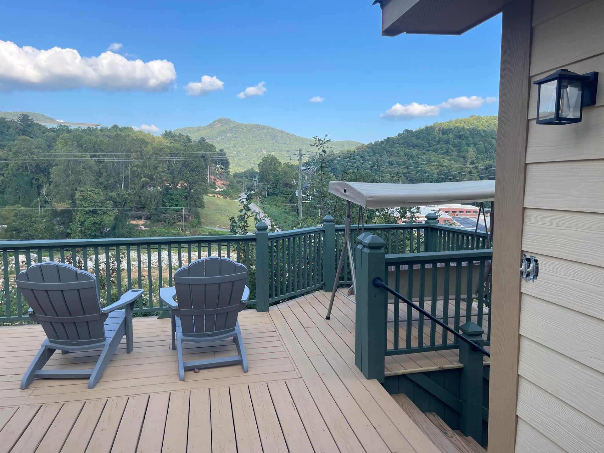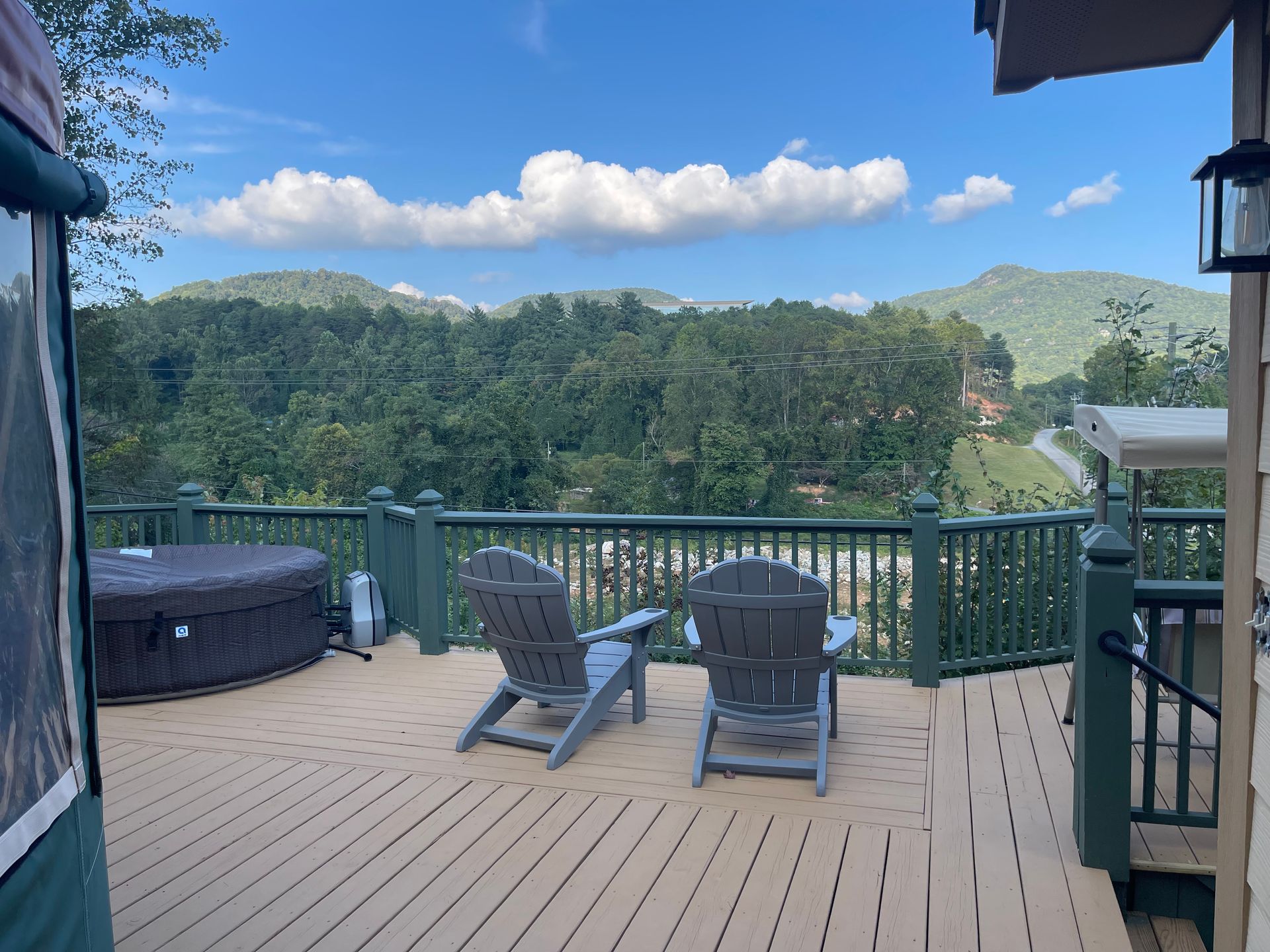 Fully furnished with one Queen bed, and a Twin-size pull-out couch plus 2 comfy velour rocking chairs, and a large flat screen TV. It also features a fully equipped kitchenette and is air-conditioned and heated for year-round comfort. Enjoy your own private bathroom with tub/shower as well as a private hot tub on the deck with beautiful mountain views - all just a 10-minute walk from town! I know you are going to love staying in this unique and cozy new addition to the Mountain Aire Cottages, Inn & Glamping! We have a 2-night minimum.