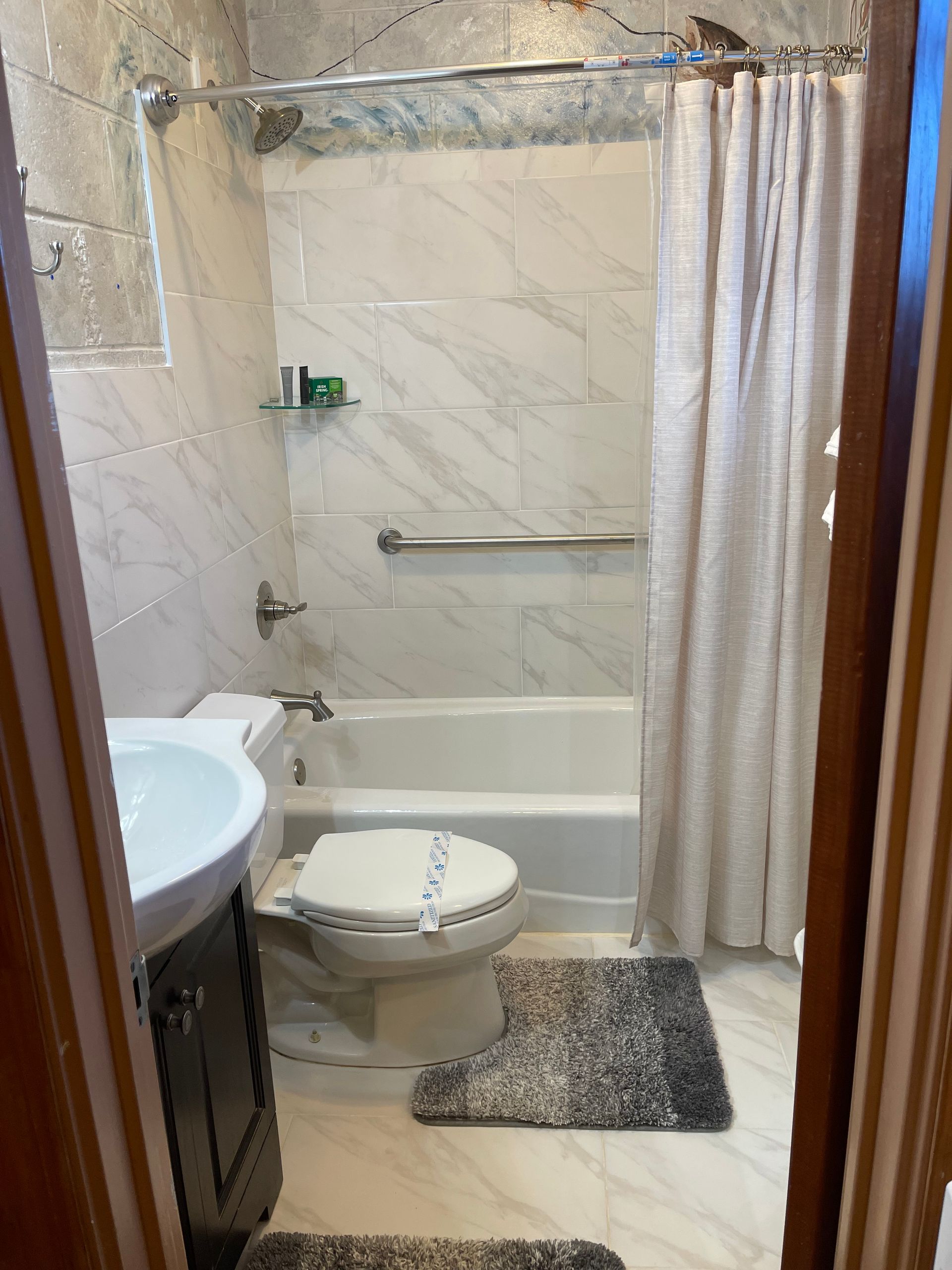 This will allow you to open the connecting door between the two adjoining Rooms to create a Suite with 3 beds (1 Queen & 2 Doubles), 2 bathrooms (Rm#3 has a tub/shower, & Room #4 has a walk-in shower), and 2 kitchenettes.